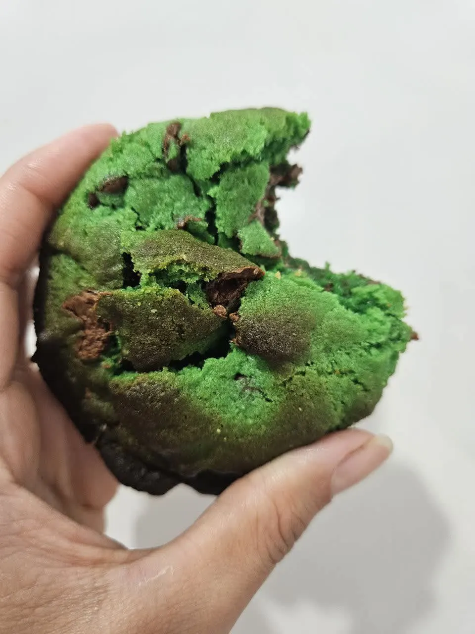Massa de cacau black e gotas de chocolate branco. Tipo que nem o Oreo.