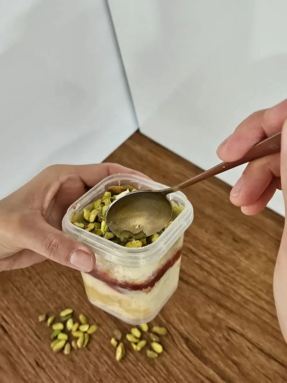 Massa amanteigada de baunilha, bem molhadinha com recheio de brigadeiro cremoso de pistache e pistache picado por cima!