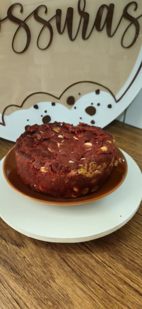 Cookietone com massa red de baunilha e cacau, com gotas de chocolate branco e recheio cremoso de cream cheese. aprox. 200g